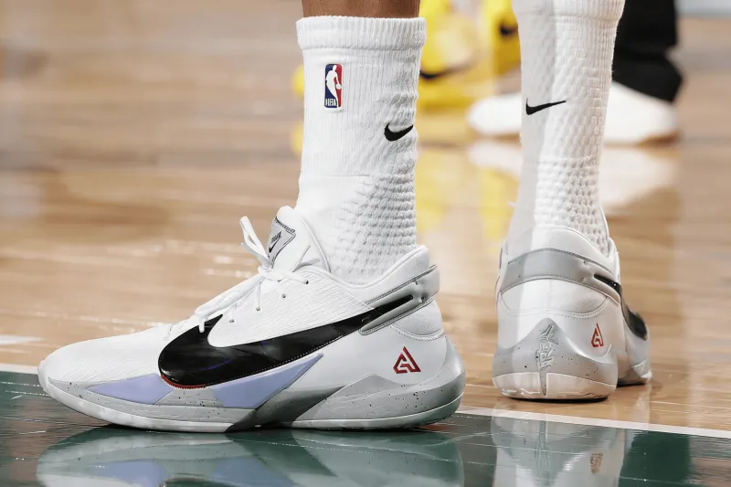 比赛中,阿德托昆博上脚Nike Freak2。