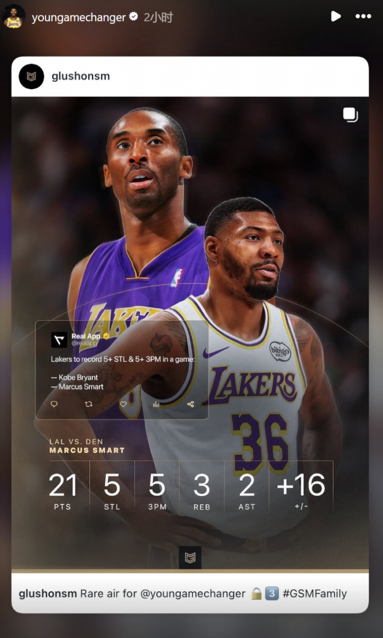 开云体育App-斯玛特单场至少5抢断5三分 湖人队史第二人&比肩科比