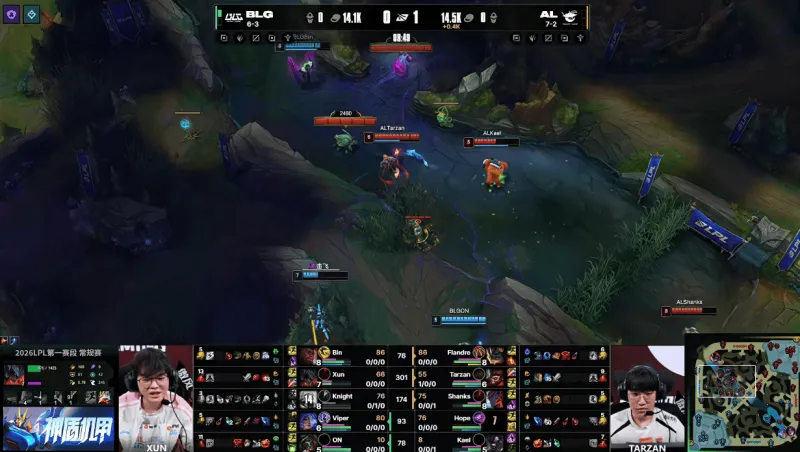 26分钟,Tarzan强开Knight失败,BLG先后击杀Hope与Shanks